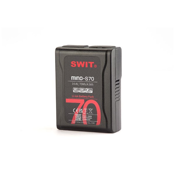 MINO-S70 es una batería de montaje en V de tamaño de bolsillo para cámaras portátiles, monitores y otros equipos de cámara. Alimenta una RED V-raptor durante al menos 1 hora y ofrece un peso mínimo para la instalación de la cámara en estabilizadores.
